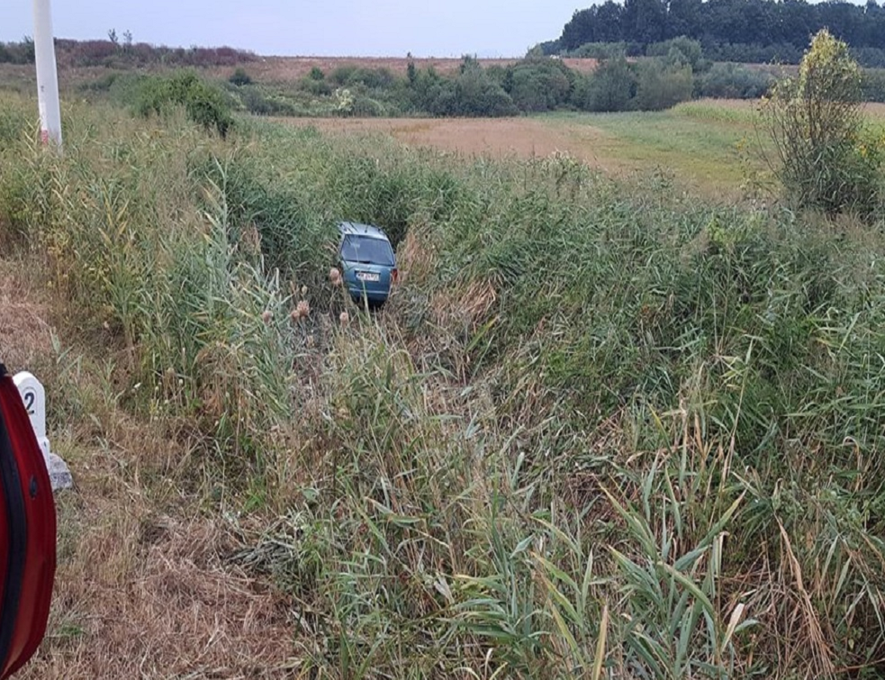 Astăzi, la ora 19:45 de minute, o mașină a părăsit carosabilul și s-a oprit în șanțul de lângă drum.