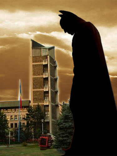 Palatul Administrativ Baia Mare este de ani bun un cuib pentru lilieci, care bantuie birourile institutiei nu doar in cursul noptii, ci si in plina zi. Asa s-a intamplat azi, 24 noiembrie, cand imagini de tot rasul s-au putut filma in timpul unei conferinte de presa sustinute de presedintele Consiliului Judetean Maramures, Mircea Man. Un liliac a intrerupt discursul sefului administratiei judetene, precum si a primarilor pe care acesta i-a avut alaturi la conferinta. Obisnuit deja cu situatia, pentru ca nu este pentru prima data cand liliecii conturba sedintele din palat, Mircea Man a cerut ajutorul lui… Batman.