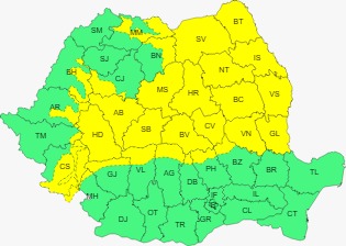 Primul cod galben este pentru intervalul 20 noiembrie, ora 10 – 20 noiembrie, ora 20.