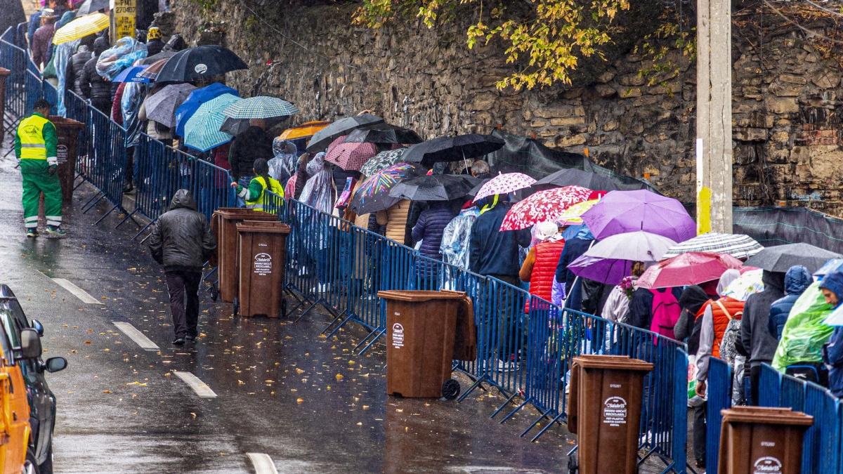 Din cauza ploii şi a temperaturilor scăzute, numărul persoanelor care au venit în pelerinaj la Mitropolia Moldovei şi Bucovinei este mai mic decât în ultimii ani. În prezent, la rând sunt aproximativ 3.000 de persoane.
