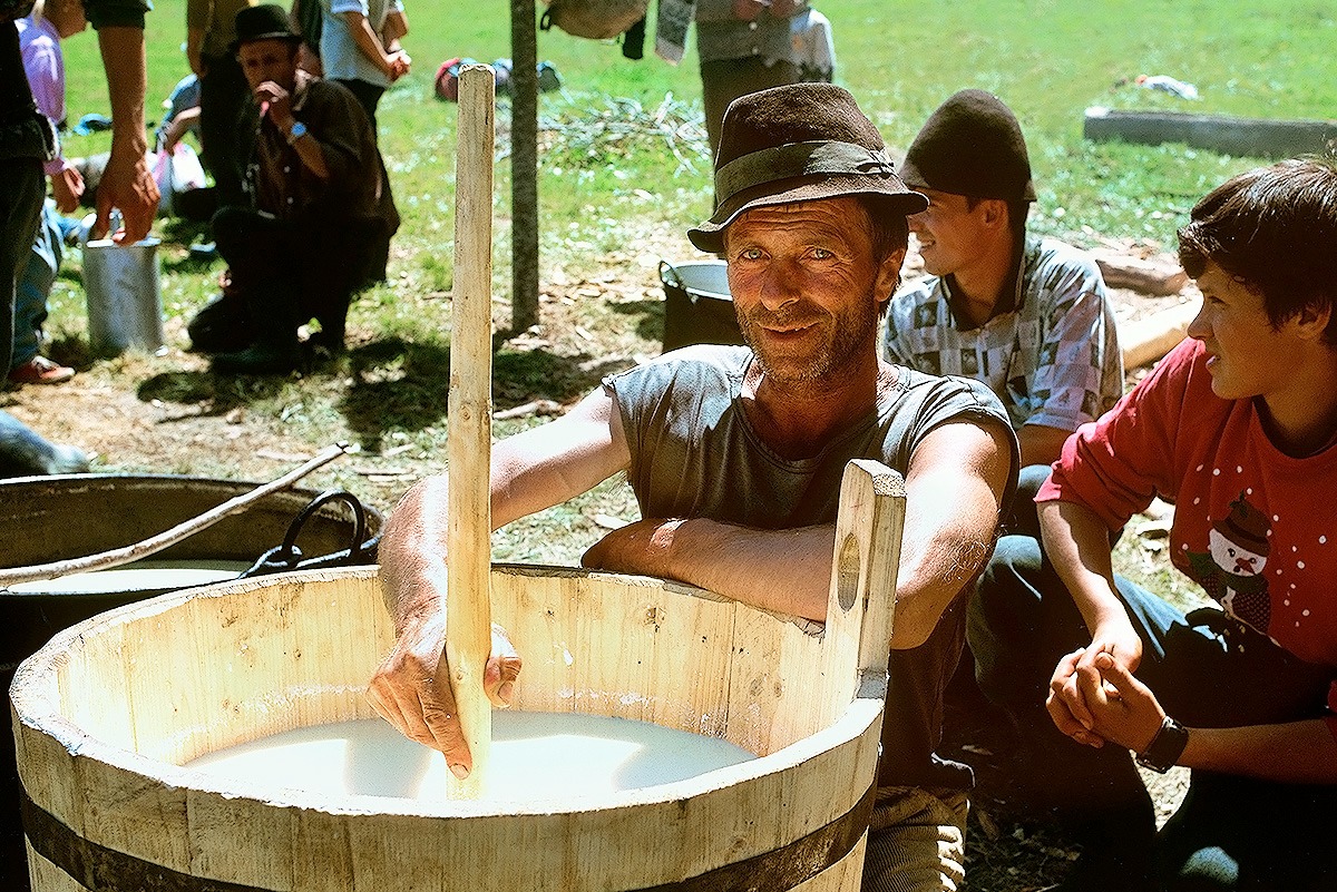 Fiecare familie care are oi acolo la gazda respectivă de stână, când se programează mulsul măsurii pregătește acasă preparate tradiționale. Face tot felul de mâncăruri care se duc sus la munte. Duc față de masă frumoasă, farfurii, puneau toate bagajele în căruță, înstruțau frumos, mergeau cu muzică, cu cântec până sus în munte. Acolo nu se face masă, nu se mănâncă până nu mulg oile și nu se măsoară laptele cu măsurătoarea gradată și după măsurătoarele astea se dă brânza la oameni. Apoi se face masa jos la umbră, în cântec la marginea pădurii. Între timp ciobanul face tocăniță din doi miei, urdă și caș.