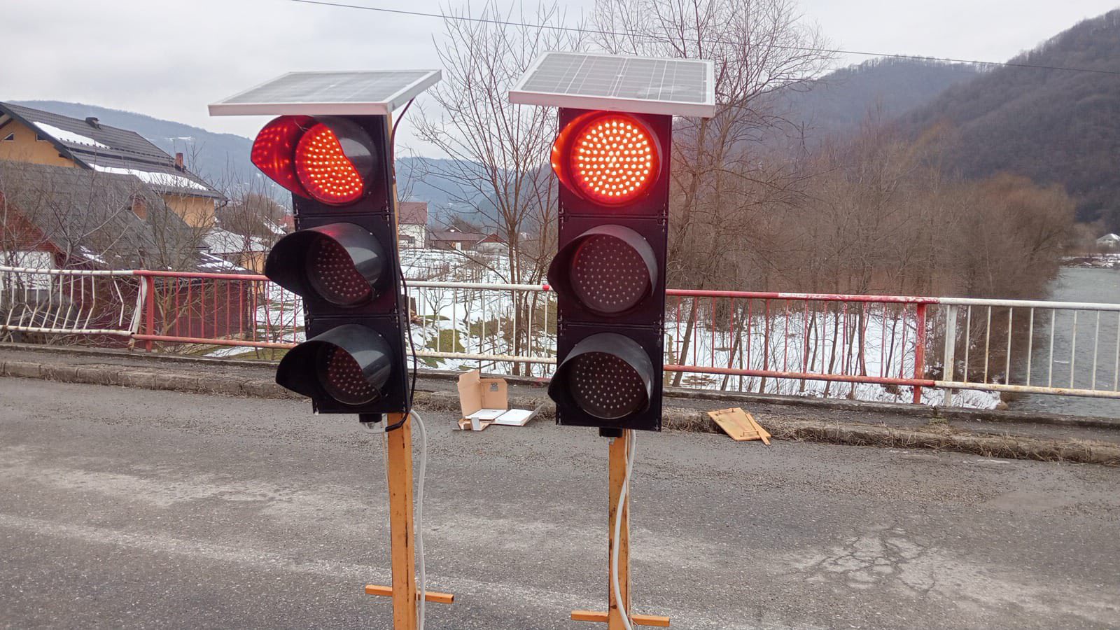 • circulație pe o singură bandă, în ambele sensuri, reglementată cu semafoare mobile