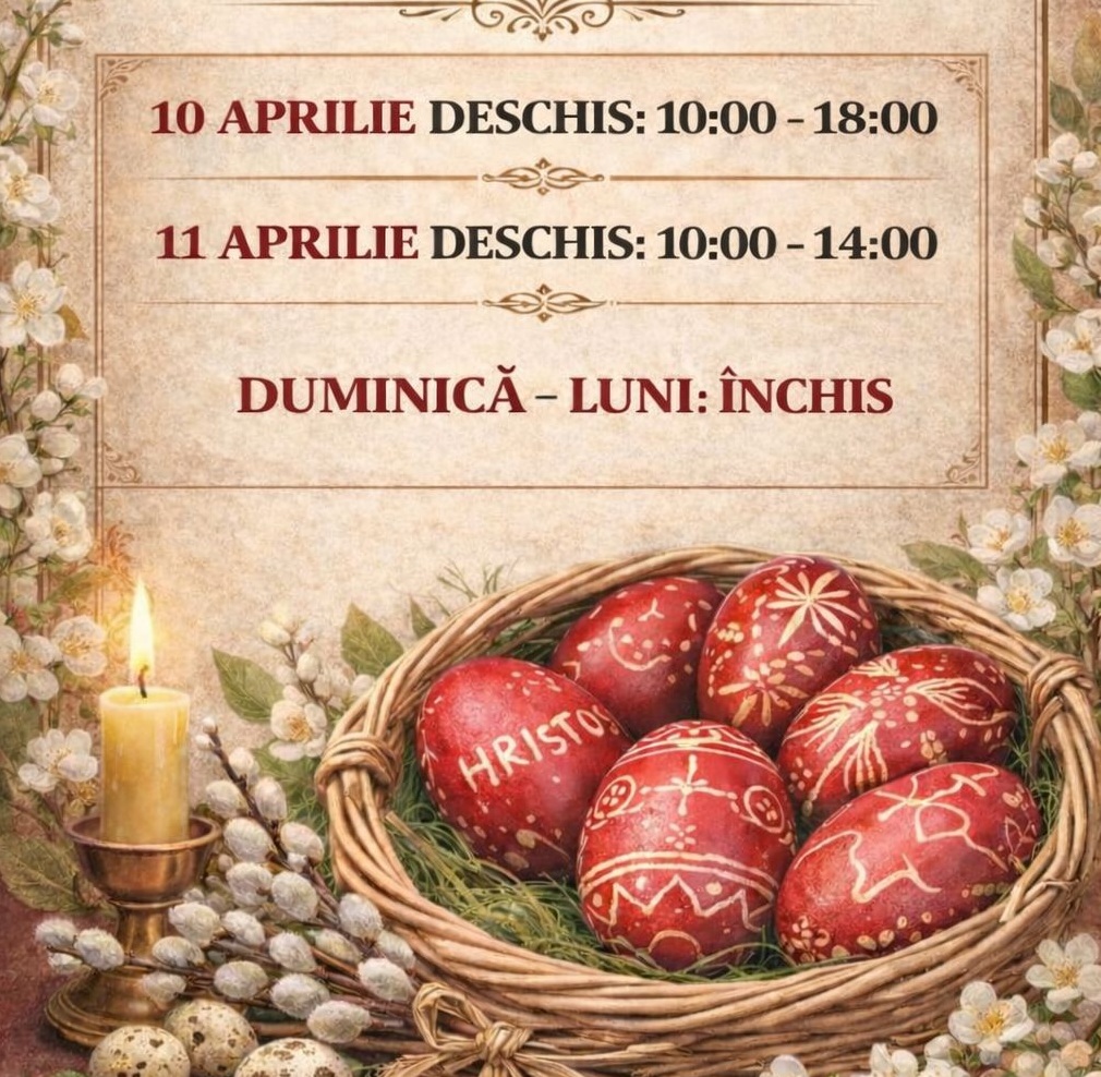 Muzeul Satului Baia Mare anunță un program special de vizitare în perioada Sărbătorilor Pascale, invitând publicul să petreacă aceste zile într-un cadru tradițional, în mijlocul naturii și al patrimoniului maramureșean.
