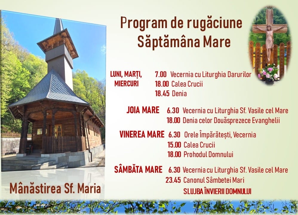 Citeste mai multÎn 29 aprilie intrăm în Săptămâna Mare a Sfintelor sărbători de Paşti. Ca de fiecare dată, la Mănăstirea “Sfânta Maria” de pe Dealul Crucii din Baia Mare vor avea loc slujbe specifice acestei perioade.