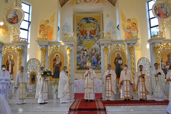 În cuvântul de Învățătură, Ierarhul a invitat credincioșii să privească la Sfânta Fecioară și să o ia drept model de ascultare și cu toții să avem încredere că „drumul vieții noastre, dacă îl parcurgem împreună cu Dumnezeu, este un drum împlinitor”. „Brațul Domnului este cel care o primește și o ține la piept pe mama sa. În icoana Adormirii Maicii Domnului din spate (din această biserică) îl vedem pe Isus care o ține în brațe pe mama Sa. Maria l-a ținut în brațe pe Isus… pentru ca Isus să o primească și să o țină în brațe pentru veșnicie. Și noi suntem fiii Maicii Domnului și cu această încredere mergem mai departe: că mâinile noastre sunt făcute pentru a înfăptui opere de caritate, a da semn în lumea aceasta de puterea lui Dumnezeu și puterea lui Dumnezeu se manifestă în ființă, brațele noastre sunt făcute pentru a da semne de iubire și lumea trăiește din iubire. Și cei care nu cred trăiesc di iubire, și cei care se îndepărtează într-o formă sau alta, și ei au nevoie de iubire”. „Ca brațele Domnului să ne fie și nouă la sfârșitul vieții, dar și în fiecare zi, consolare că suntem purtați în brațe. Noi, greco-catolicii, avem această experiență profundă a purtării în brațe de către Maica Domnului, pe tot parcursul istoriei Bisericii noastre”, a afirmat Preasfințitul Vasile la finalul omiliei, cerând Maicii Sfinte „să ne deschidă inima pentru a-i putea înțelege iubirea”.