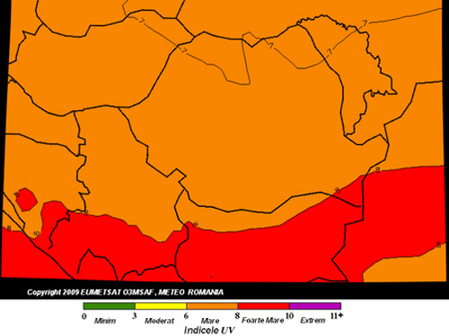 Valori mari ale radiatiilor UV s-au semnalat in ultimele zile in Romania, insa meteorologii au declarat ca ”norul rosu” de ultraviolete, a carui intensitate este de zece ori mai mare decat cea care poate fi suportata de piele, nu s-a extins in tara noastra. Cu toate acestea, dermatologii au avertizat populatia sa nu se expuna la soare la orele pranzului ca sa nu sufere arsuri si au precizat ca riscul aparitiei unor tumori maligne este mult mai mare, mai ales in cazul persoanelor cu alunite pe piele.