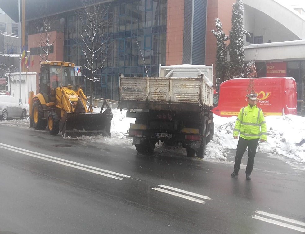 Încă din seara zilei de luni, pe Bd. Traian, pe tronsonul dintre Bulevardul Unirii și Bulevardul Republicii, circulația autovehiculelor a fost restricționată pentru curățarea parcărilor de zăpadă.