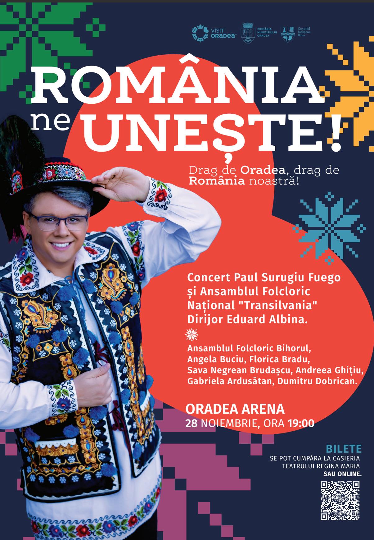 Orădenii sunt invitați să celebreze Ziua Națională a României printr-un spectacol folcloric de excepție, intitulat „România ne unește!”, care va avea loc la Oradea Arena, începând cu ora 19:00.