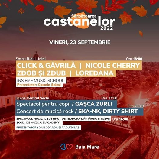 Programul de astăzi, vineri, 23 septembrie, la cele două scene ale Sărbătoarea Castanelor 2022.