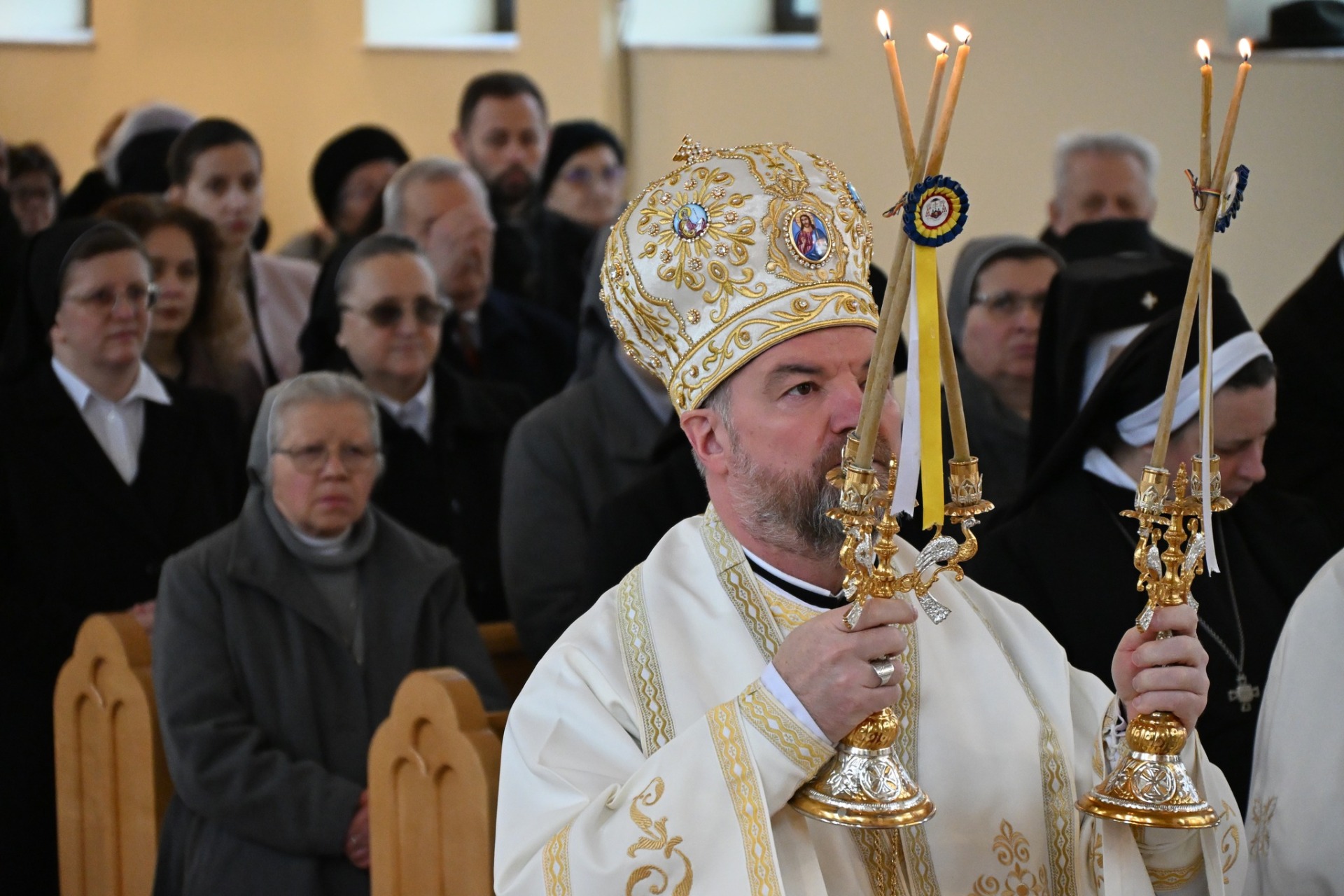 Parohia „Sfânta Maria” din Baia Mare a găzduit astăzi o Sfântă Liturghie Arhierească cu ocazia sărbătorii „Întâmpinarea Domnului”, care marchează și Ziua Vieții Consacrate.