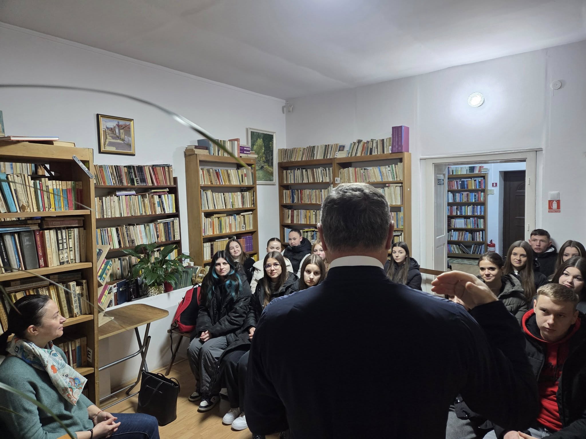 În ajunul sărbătorii 𝑆𝑓𝑎̂𝑛𝑡𝑢𝑙𝑢𝑖 𝐼𝑒𝑟𝑎𝑟ℎ 𝑁𝑖𝑐𝑜𝑙𝑎𝑒, tema cea mai potrivită pentru întâlnirea părintelui Iulian Szerasz cu elevii clasei a XI-a de la Liceul Teoretic „Bogdan Vodă” din Vișeu de Sus, însoțiți de doamna dirigintă Ana Andreica, a fost aceea de a ne apropia de sfinți. Tema propusă: „𝐒𝐟𝐢𝐧𝐭̦𝐢𝐢 – 𝐦𝐨𝐝𝐞𝐥𝐞 𝐩𝐞𝐧𝐭𝐫𝐮 𝐭𝐢𝐧𝐞𝐫𝐢” Întâlnirea a început sub lumina versetului: „𝑀𝑖𝑛𝑢𝑛𝑎𝑡 𝑒𝑠𝑡𝑒 𝐷𝑢𝑚𝑛𝑒𝑧𝑒𝑢 𝑖̂𝑛𝑡𝑟𝑢 𝑠𝑓𝑖𝑛𝑡̦𝑖𝑖 𝐿𝑢𝑖”(Ps. 67, 36). Aceste cuvinte ne arată că Dumnezeu Se descoperă oamenilor prin alți oameni – nu prin personaje perfecte sau supereroi, ci prin oameni asemenea nouă: cu slăbiciuni, cu frici, cu încercări. Diferența este că ei au avut curajul și încrederea să-L lase pe Dumnezeu să lucreze în viața lor.Discuția a continuat prin câteva întrebări firești pentru tineri: Cine sunt sfinții? De ce sunt vrednici să îi urmăm? Au avut și ei ispite și neputințe?