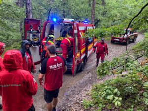 Pe un cod portocaliu de vreme rea cu ploaie torențială, salvatorii montani au ajuns la victimă, i-au acordat primul ajutor și împreună cu echipajul medical de la SMURD au reușit îl stabilizeze, l-au transportat la autospecială SMURD de unde va fi transportat la UPU Baia Mare.