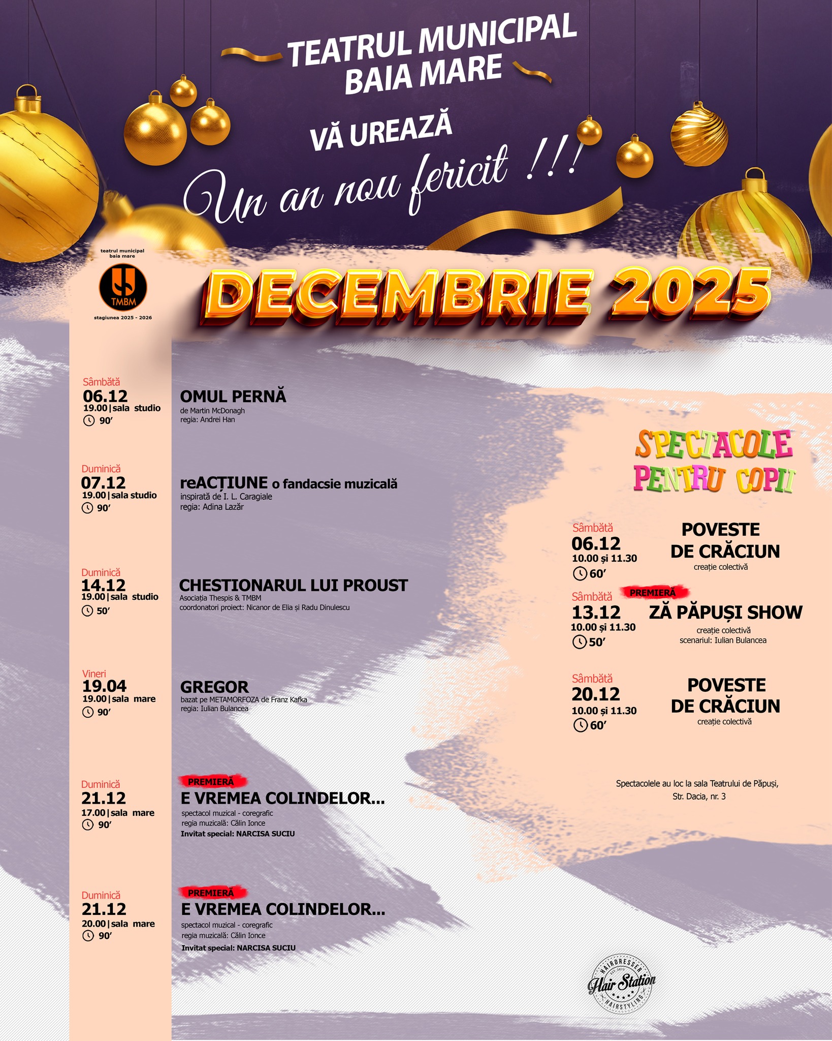 Ne apropiem ușor de finalul acestui an, iar reprezentanții Teatrului Municipal Baia Mare ne invită la spectacolele programate în luna decembrie.