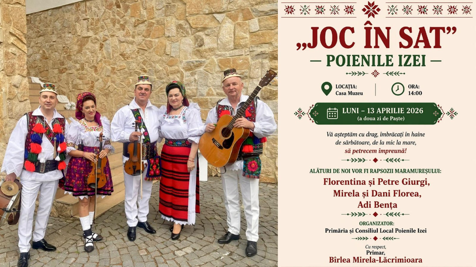 Citeste mai multÎn inima Maramureșului, acolo unde tradițiile încă se trăiesc autentic, comunitatea din Poienile Izei se pregătește de sărbătoare. Luni, 13 aprilie 2026, în a doua zi de Paște, localnicii și oaspeții sunt invitați să ia parte la un eveniment plin de emoție și bucurie: „Joc în Sat”.