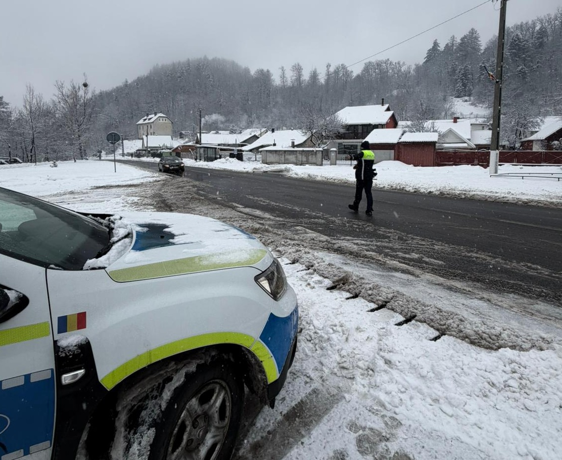 Polițiștii rutieri se află în teren și acționează continuu pentru fluidizarea circulației, prevenirea producerii accidentelor rutiere și sprijinirea participanților la trafic, fiind în permanentă legătură cu administratorii drumururilor și cu societățile care execută lucrări de deszăpezire.