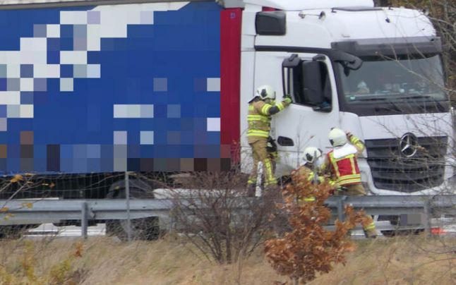 Perimetrul a fost închis, iar pompierii au fost chemaţi să deschidă portiera cabinei. Şoferul român a fost găsit mort.