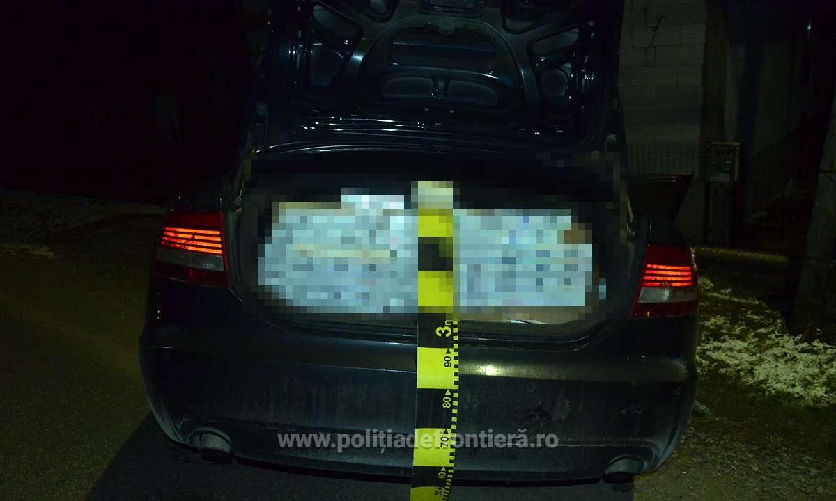 Astfel, în jurul orei 04.50, polițiștii de frontieră au identificat în trafic, pe raza localității Falcău, un autoturism înmatriculat în România, despre care se dețineau date că transportă o cantitate însemnată de țigări. Oamenii legii au procedat la interceptarea maşinii în cauză, însă șoferul nu a oprit la semnalele regulamentare, continuându-și deplasarea în mare viteză.