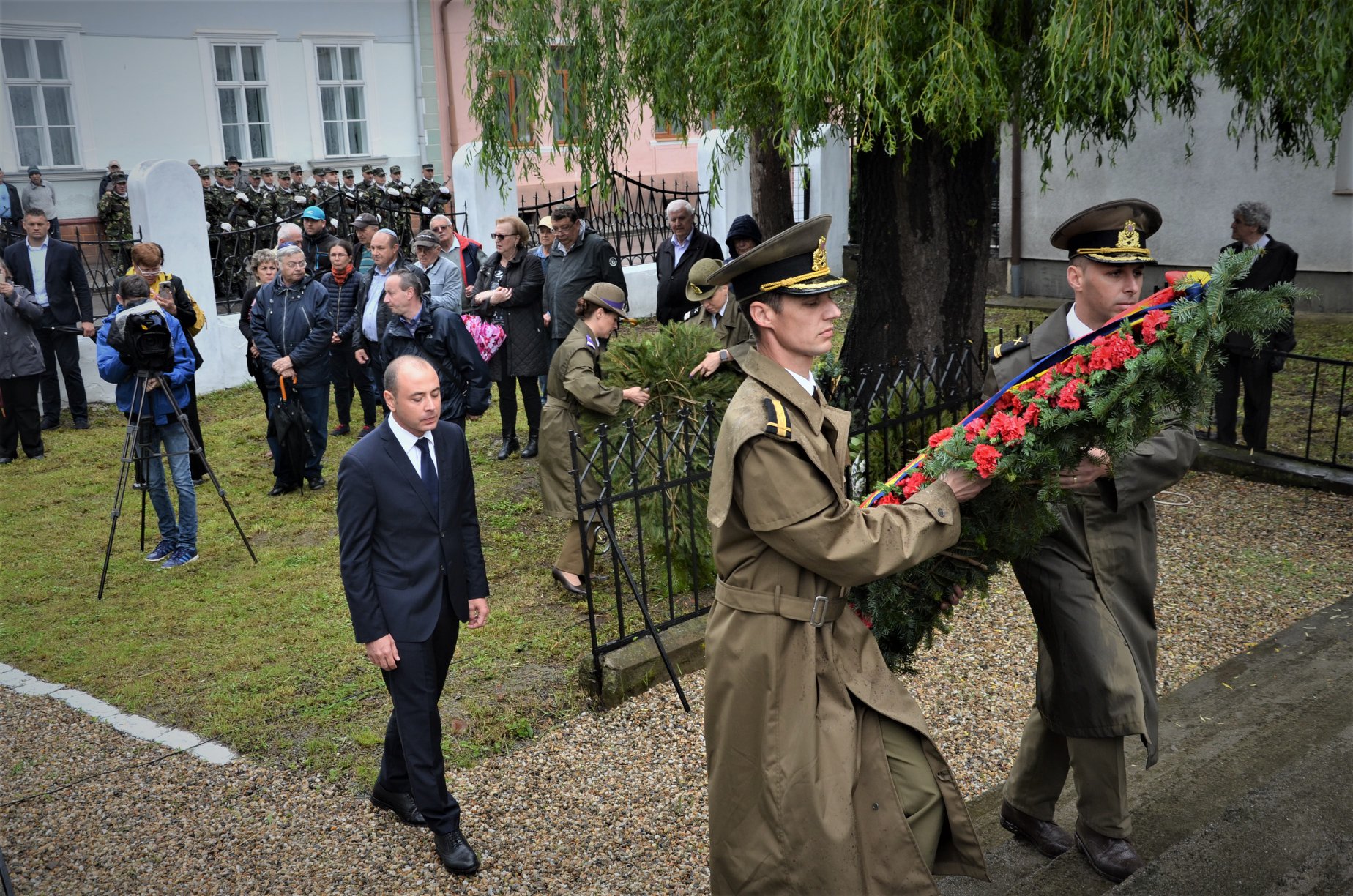 După depunerea coroanelor de flori, ceremonialul s-a încheiat cu defilarea militarilor din Batalionul 612 Artilerie Antitanc ”Maramureș” si a fanfarei militare.