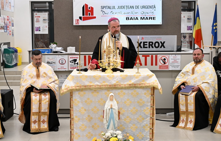 Miercuri, 11 februarie, Ziua Mondială a Bolnavului, ediția a XXXIV-a a fost sărbătorită la Spitalul Județean de Urgență „Dr. Constantin Opriș” din Baia Mare, prin celebrarea Tainei Sfântului Maslu de către Preasfinția Sa Vasile Bizău, împreună cu părintele Ioan Balea, vicar judecătoresc, părintele Emil Gîrboan, protopop al Protopopiatului Baia Mare, părintele Mihai Șimonca, capelan al Misiunii greco-catolică Spitale și alți preoți din Eparhie.